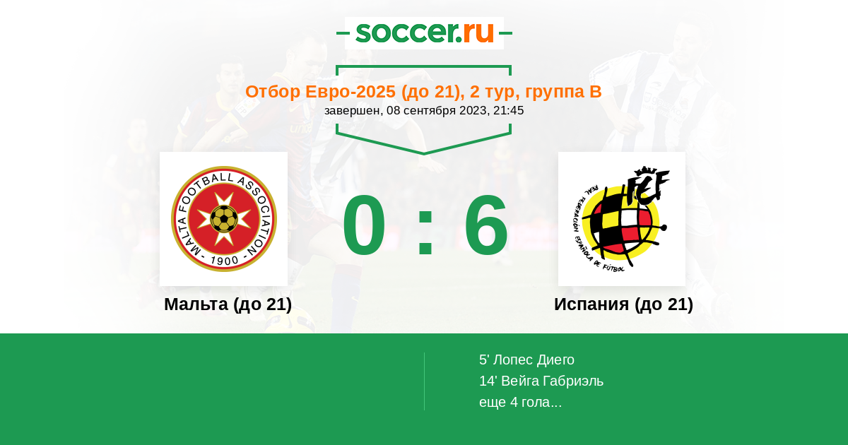 Протокол матча Мальта (до 21) против Испания (до 21)