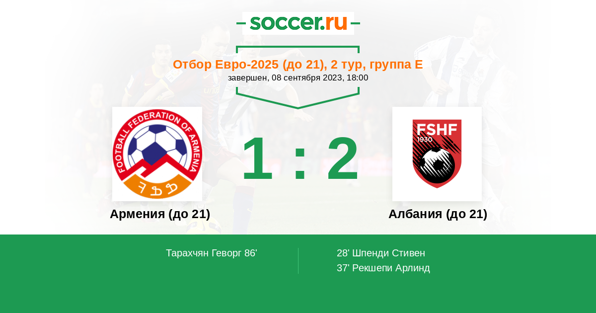 Протокол матча Армения (до 21) против Албания (до 21)