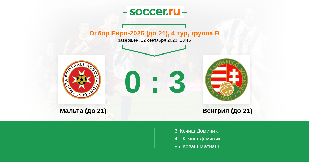 Протокол матча Мальта (до 21) против Венгрия (до 21)