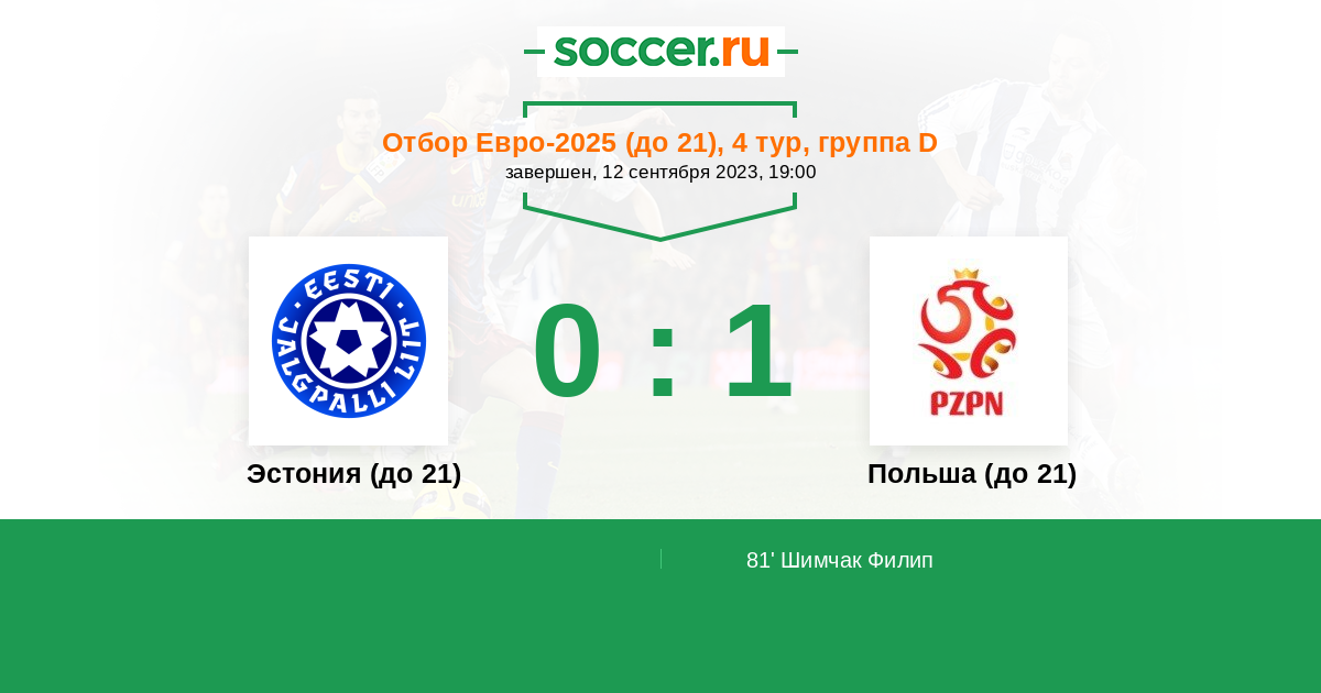 Протокол матча Эстония (до 21) против Польша (до 21)