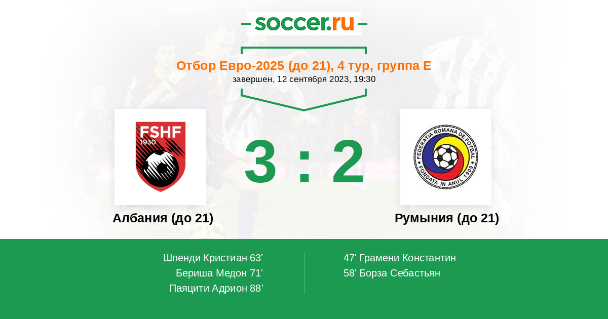 Протокол матча Албания (до 21) против Румыния (до 21)