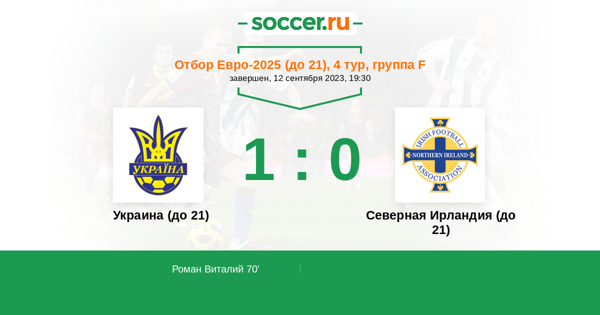 Протокол матча Украина (до 21) против Северная Ирландия (до 21)