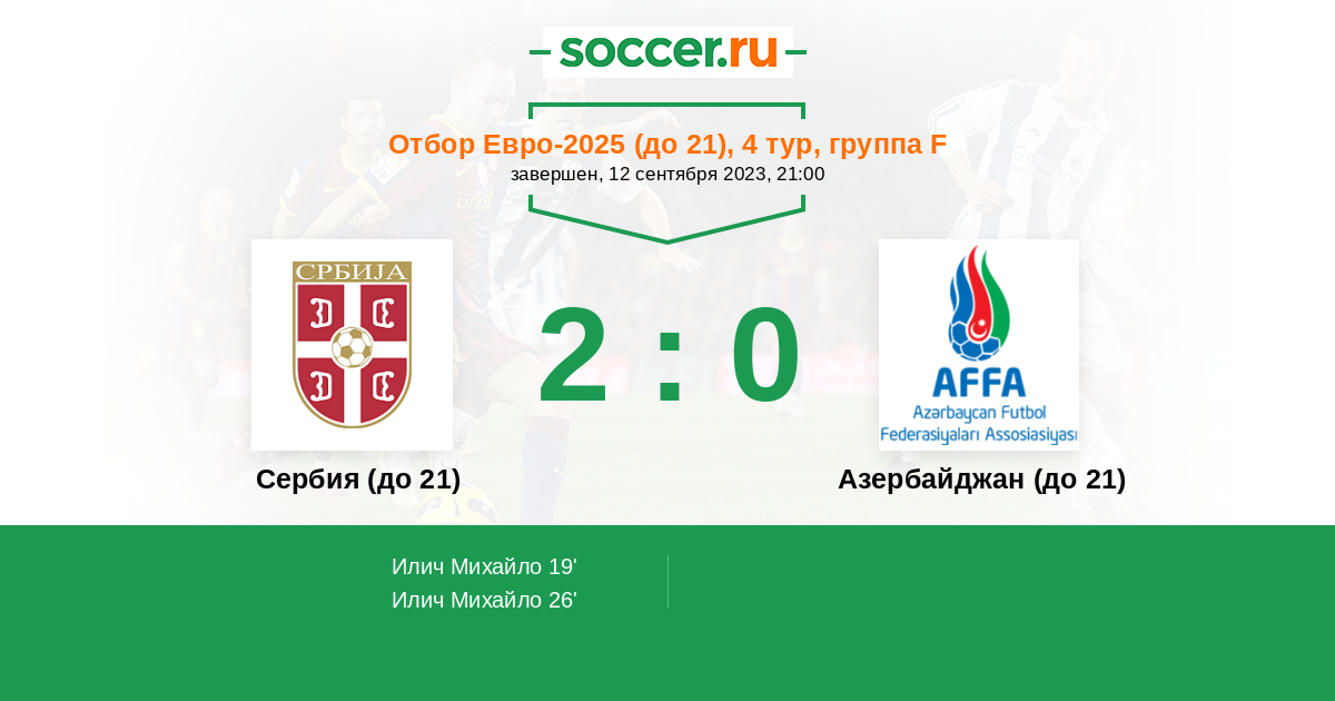 Протокол матча Сербия (до 21) против Азербайджан (до 21)