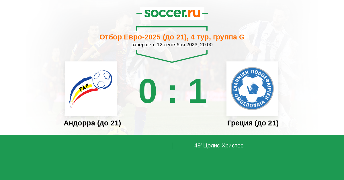 Протокол матча Андорра (до 21) против Греция (до 21)