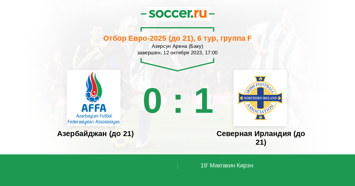 Протокол матча Азербайджан (до 21) против Северная Ирландия (до 21)