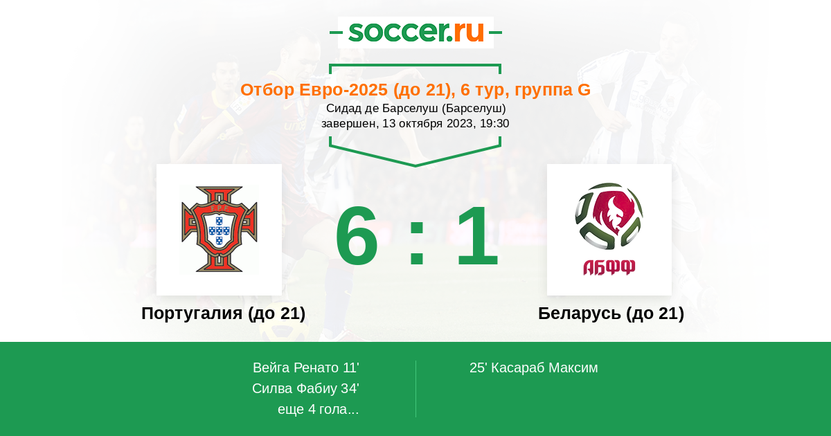 Протокол матча Португалия (до 21) против Беларусь (до 21)