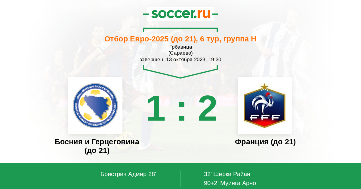 Протокол матча Босния и Герцеговина (до 21) против Франция (до 21)