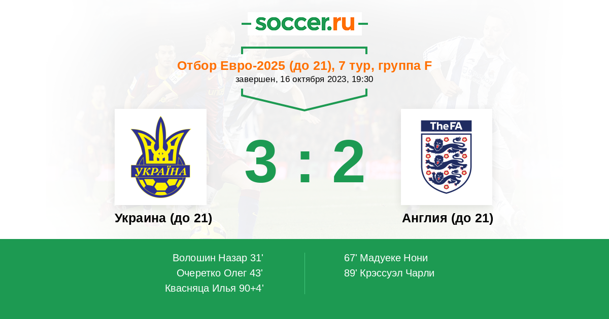 Протокол матча Украина (до 21) против Англия (до 21)