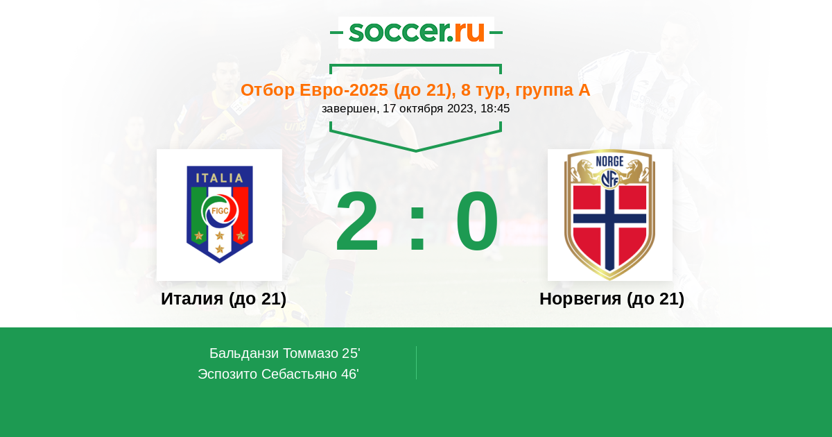 Протокол матча Италия (до 21) против Норвегия (до 21)
