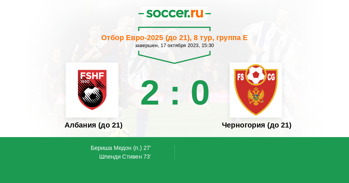 Протокол матча Албания (до 21) против Черногория (до 21)