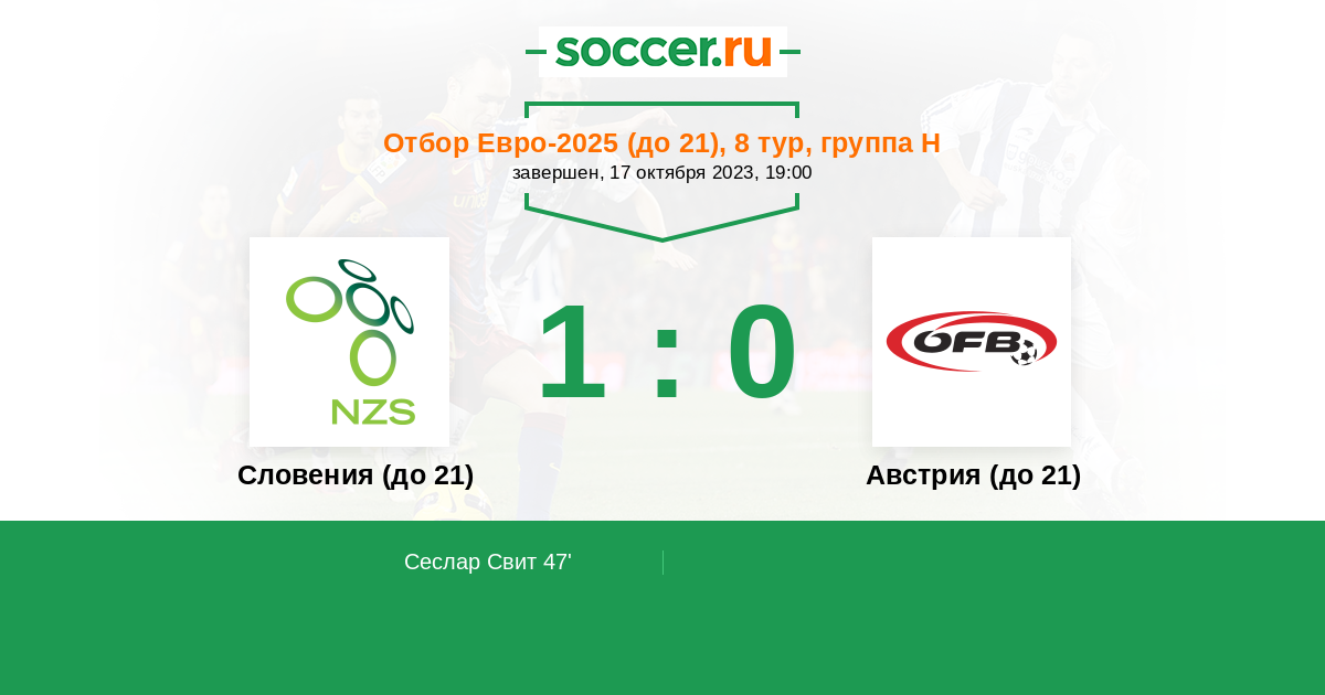 Протокол матча Словения (до 21) против Австрия (до 21)