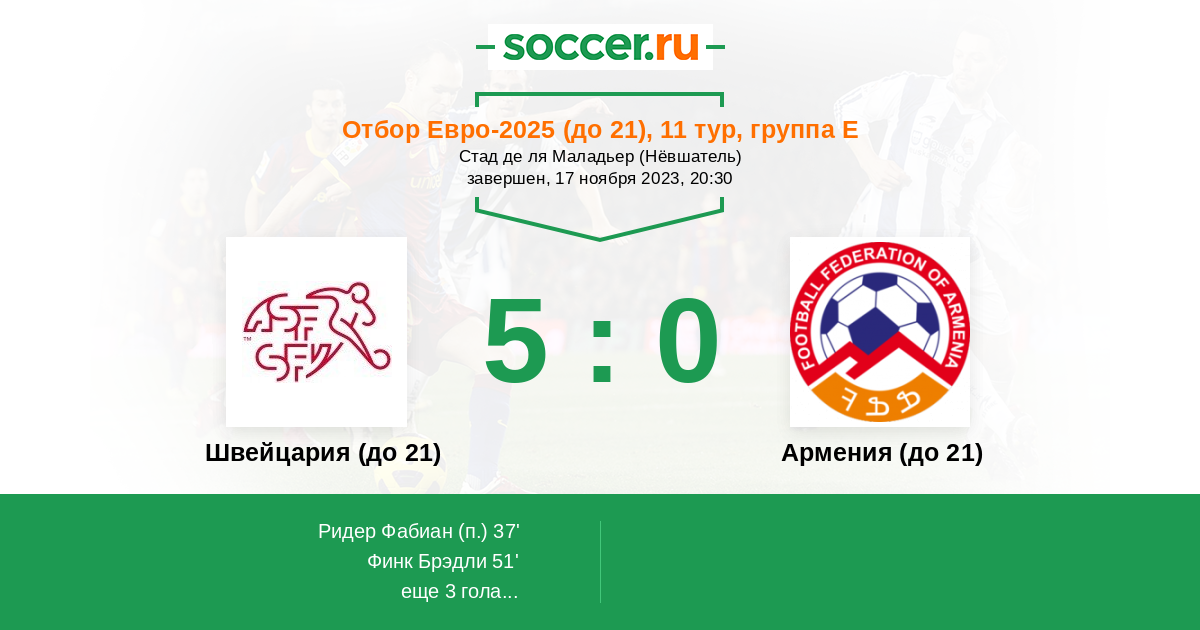 Протокол матча Швейцария (до 21) против Армения (до 21)