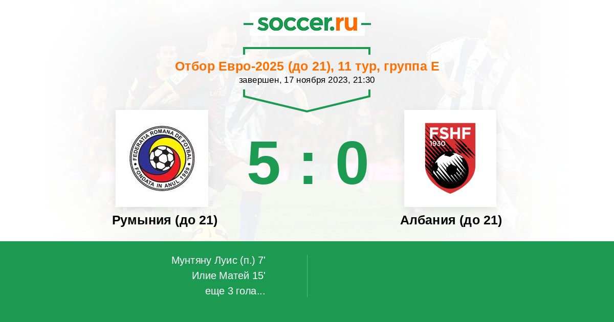 Протокол матча Румыния (до 21) против Албания (до 21)