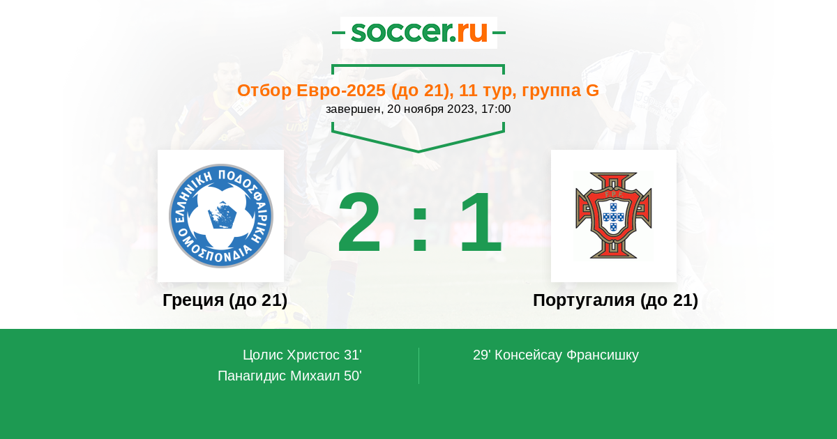 Протокол матча Греция (до 21) против Португалия (до 21)