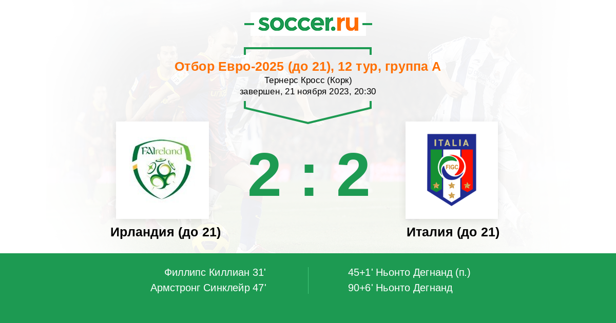 Протокол матча Ирландия (до 21) против Италия (до 21)