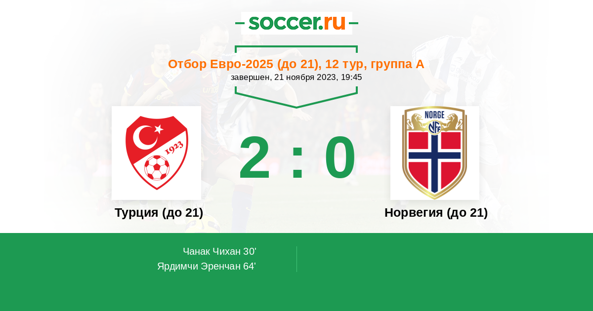Протокол матча Турция (до 21) против Норвегия (до 21)
