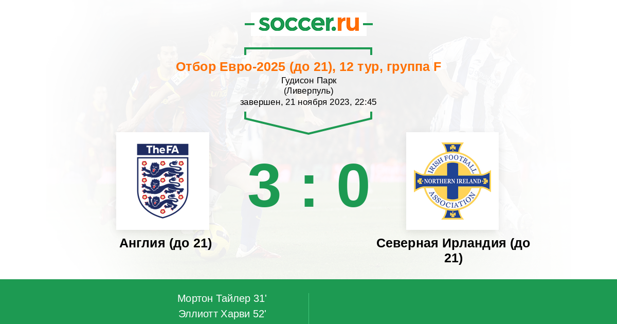 Протокол матча Англия (до 21) против Северная Ирландия (до 21)