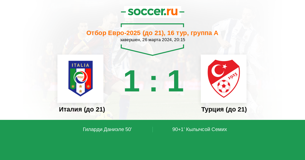 Протокол матча Италия (до 21) против Турция (до 21)