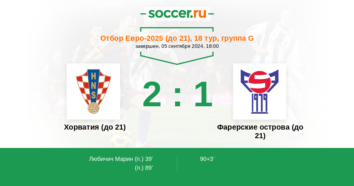 Протокол матча Хорватия (до 21) против Фарерские острова (до 21)