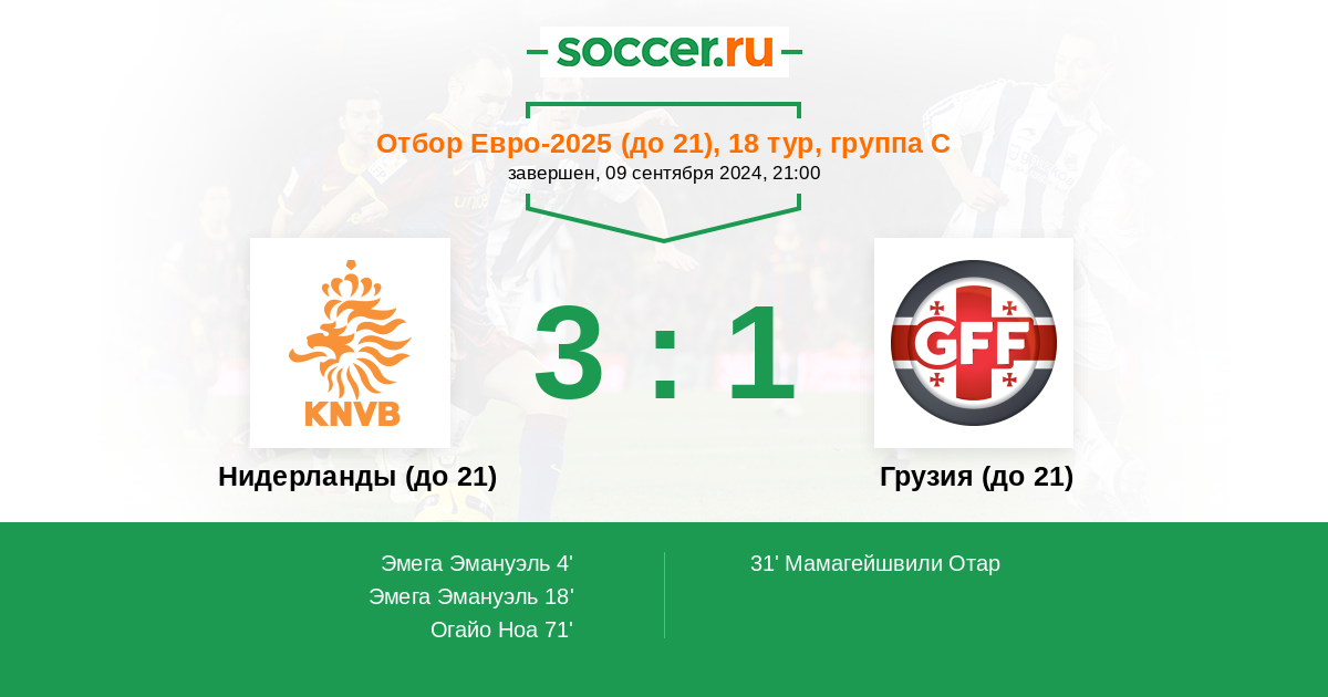 Протокол матча Нидерланды (до 21) против Грузия (до 21)