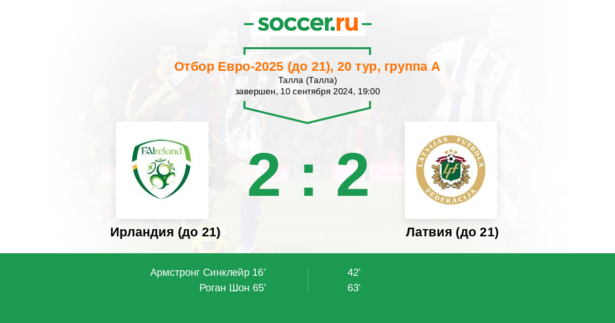 Протокол матча Ирландия (до 21) против Латвия (до 21)
