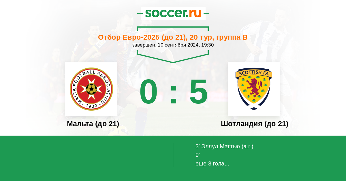 Протокол матча Мальта (до 21) против Шотландия (до 21)