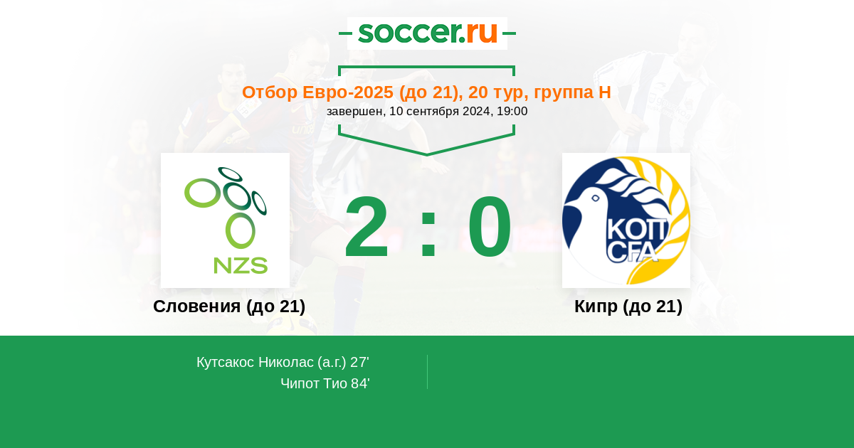 Протокол матча Словения (до 21) против Кипр (до 21)