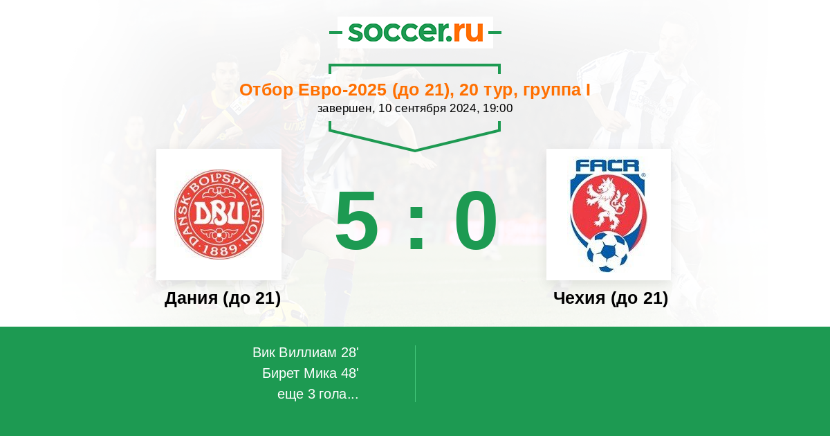Протокол матча Дания (до 21) против Чехия (до 21)
