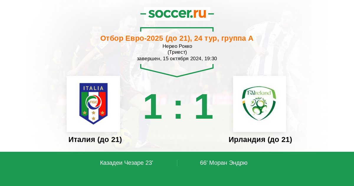 Протокол матча Италия (до 21) против Ирландия (до 21)