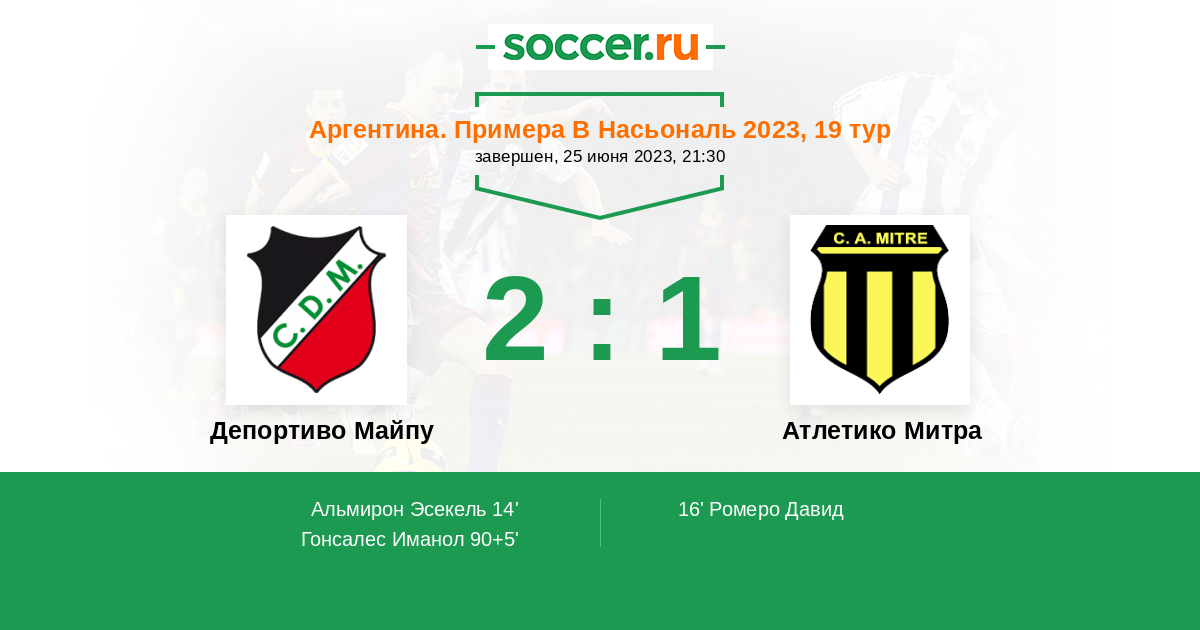 Протокол матча Депортиво Майпу против Атлетико Митра