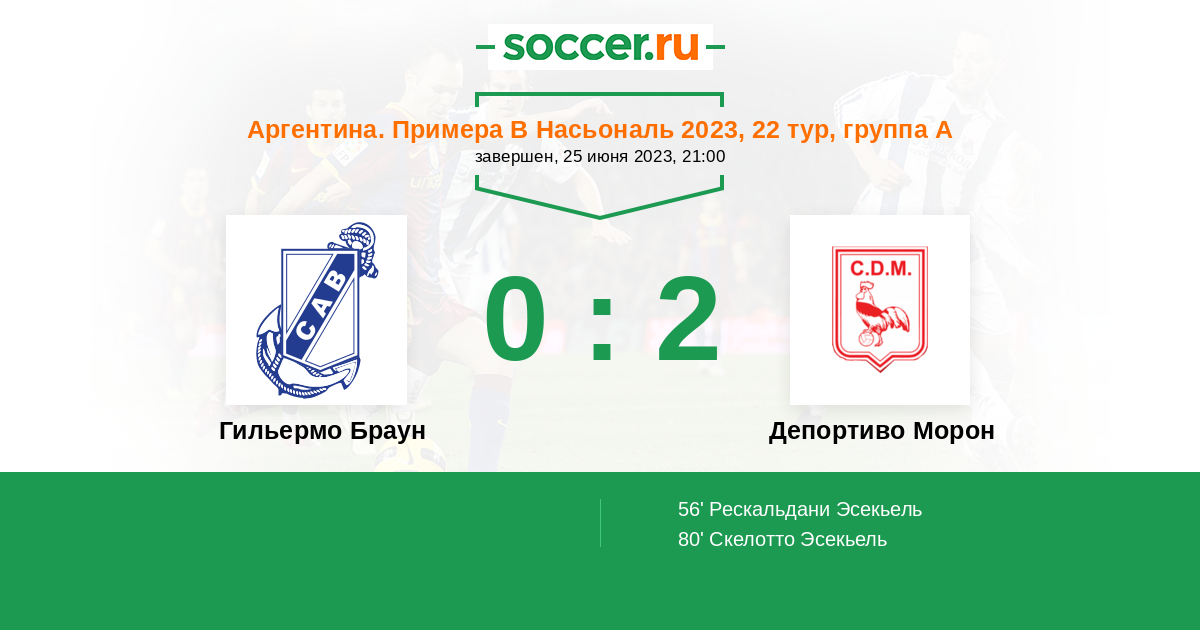 Протокол матча Гильермо Браун против Депортиво Морон