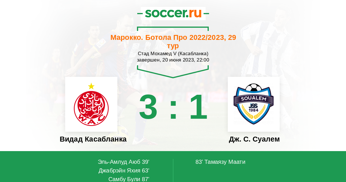 Протокол матча Видад Касабланка против Дж. С. Суалем