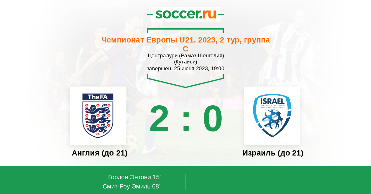 Протокол матча Англия (до 21) против Израиль (до 21)