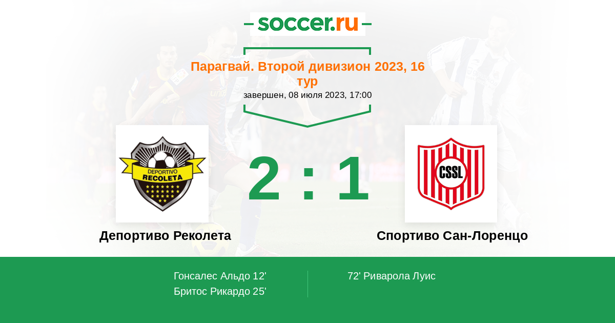 Протокол матча Депортиво Реколета против Спортиво Сан-Лоренцо