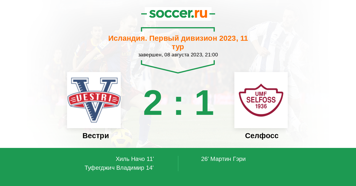 Протокол матча Вестри против Селфосс