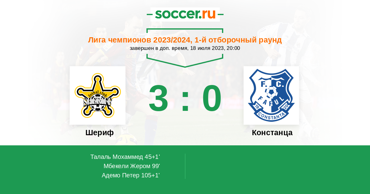 Шериф - Констанца ! Ответный матч ЛЧ , Шериф играет дома , ему нужна уверенная победа и они сделают всё , что бы её добиться . Ф1( -1 ) .