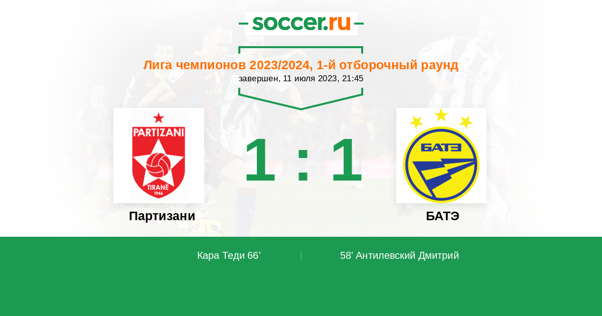 Протокол матча Партизани против БАТЭ