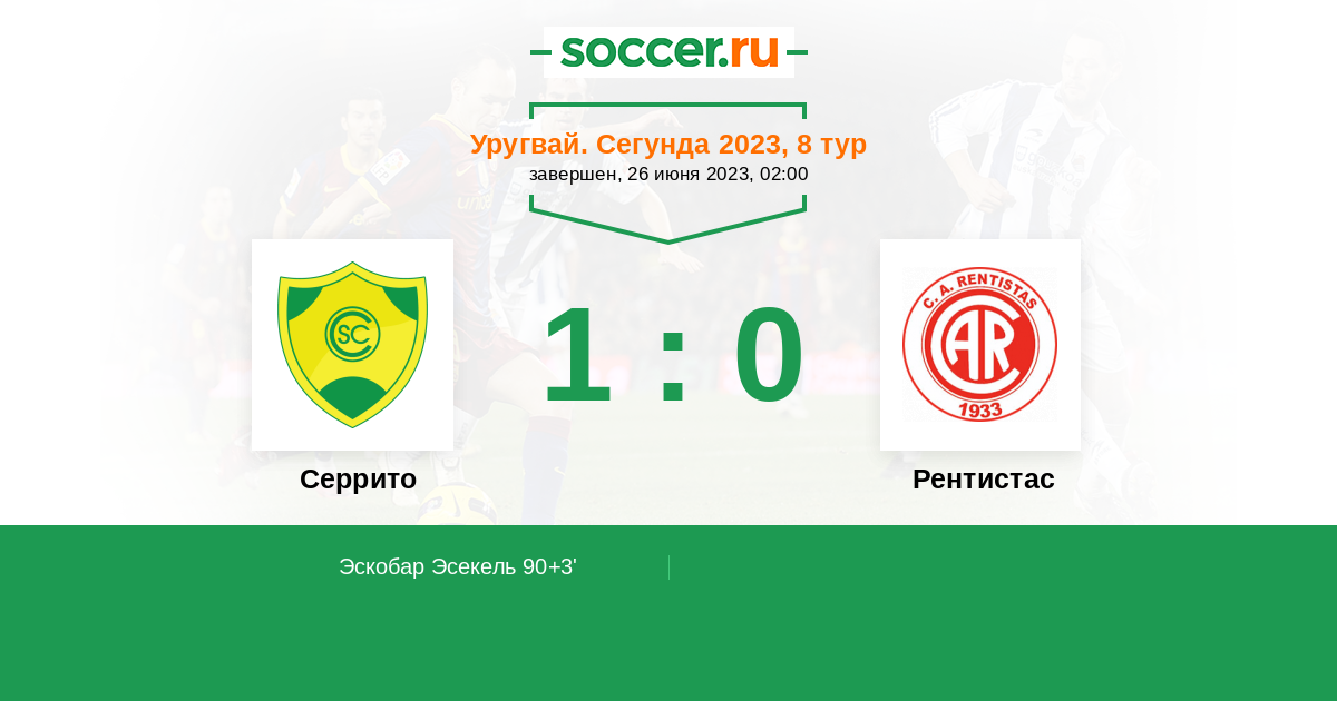 Протокол матча Серрито против Рентистас