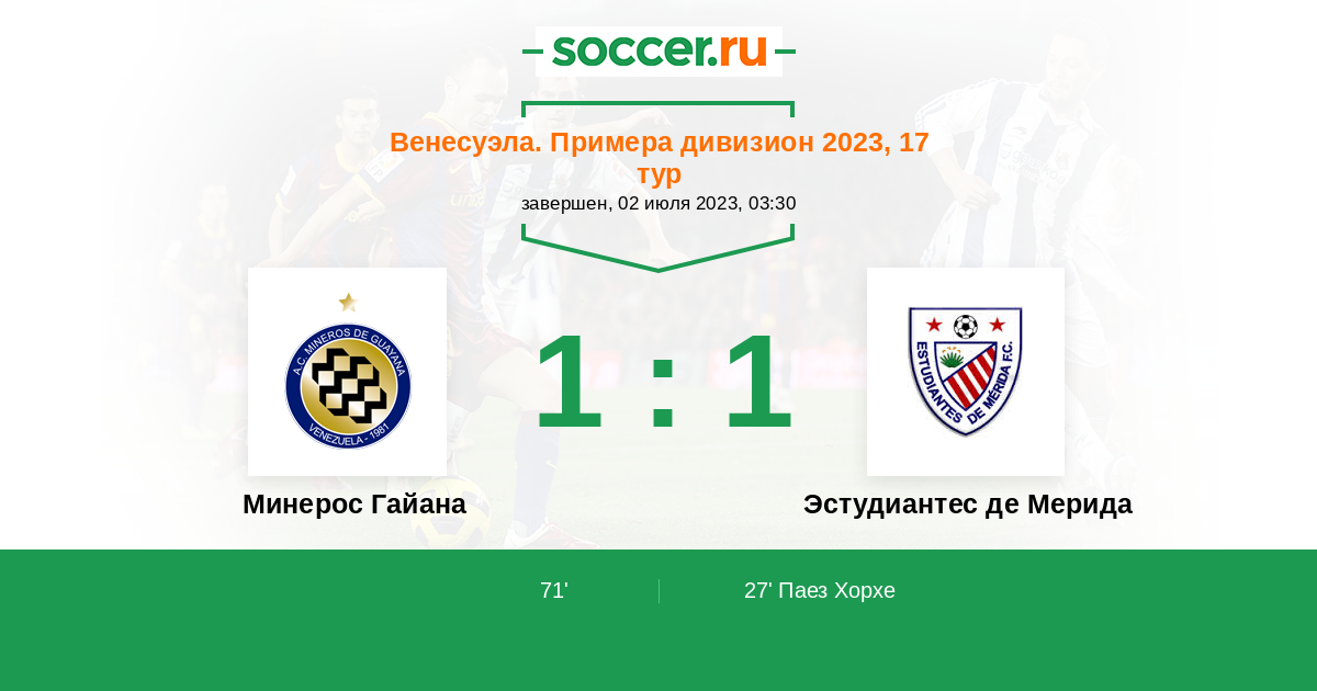 Протокол матча Минерос Гайана против Эстудиантес Мерида