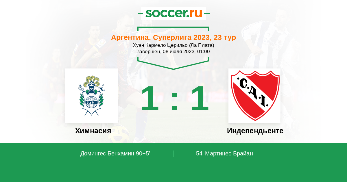 Протокол матча Химнасия против Индепендьенте