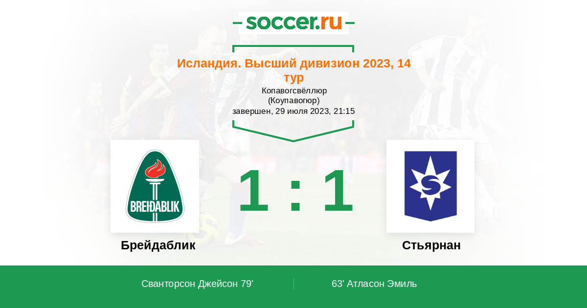63' (0:1) Атласон Эмиль (22) (Кристьянссон Гудмундур (5))
