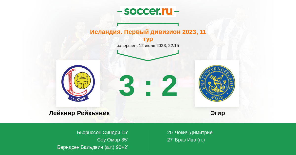 Протокол матча Лейкнир Рейкьявик против Эгир