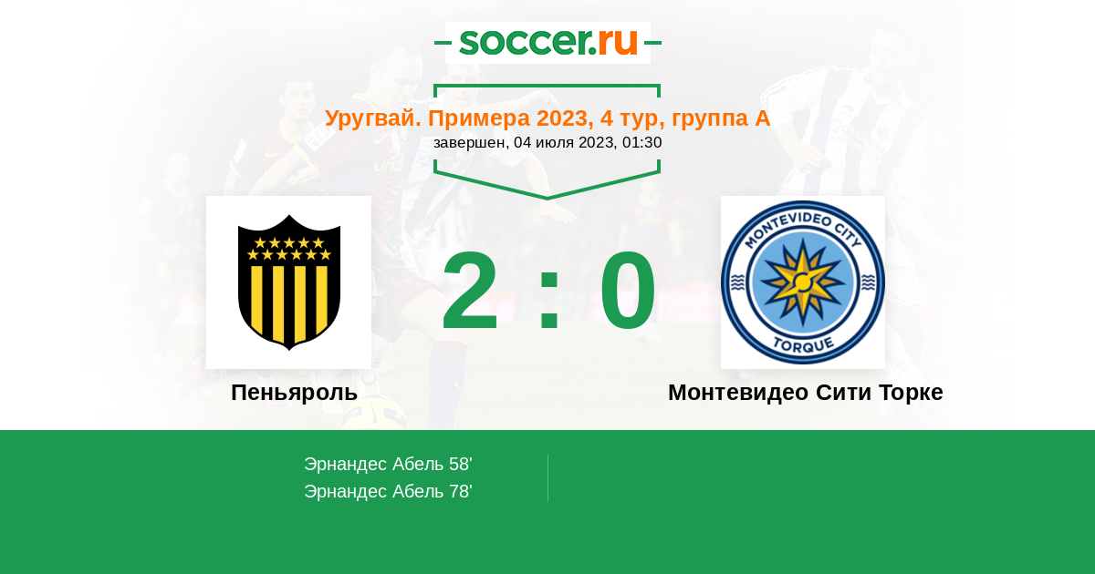 Протокол матча Пеньяроль против Монтевидео Сити Торке