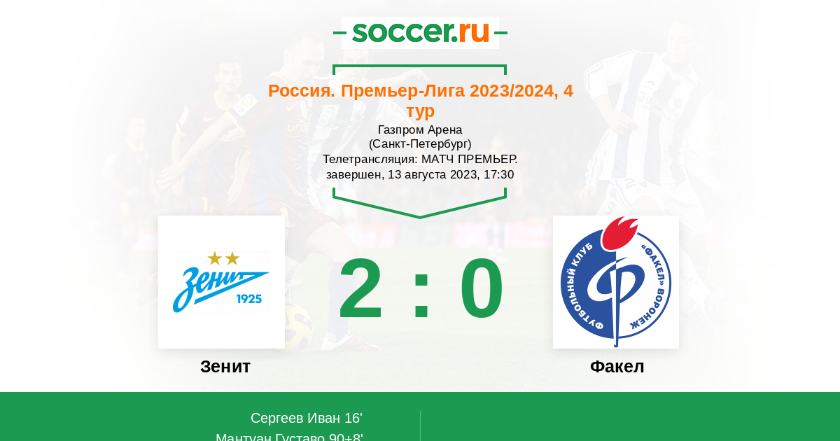 Протокол матча Зенит против Факел