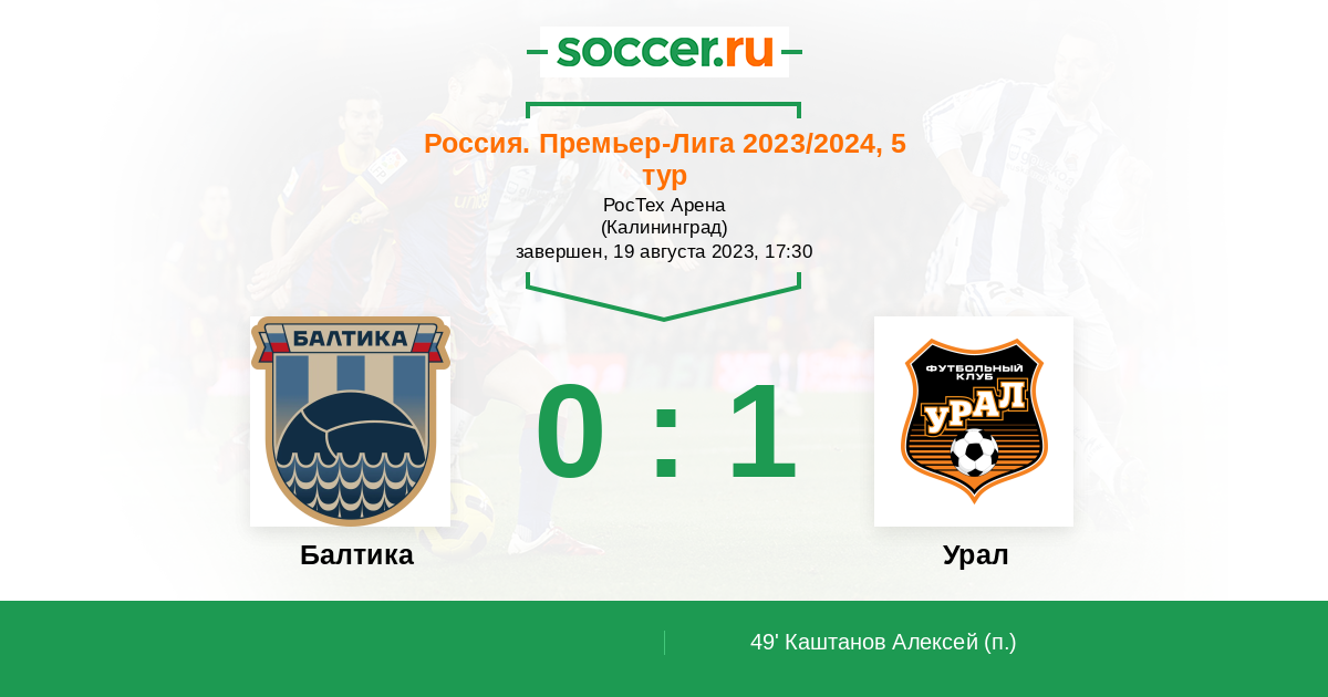 Протокол матча Балтика против Урал