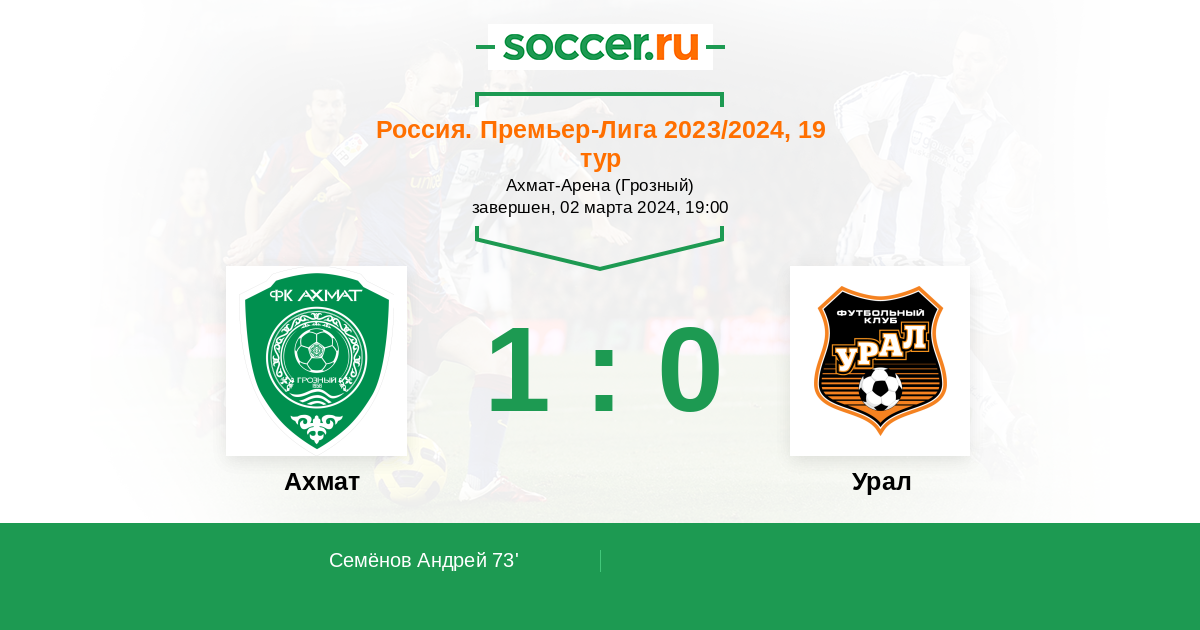 “Урал” находится на 12-й позиции турнирной таблицы, на счету команды Виктора Гончаренко 19 очков, и, в случае поражения от “Ахмата”, екатеринбуржцы фактически поменяются с грознецами местами, опустившись в зону стыков. В предыдущих пяти турах чемпионата России “Урал” потерпел четыре поражения.