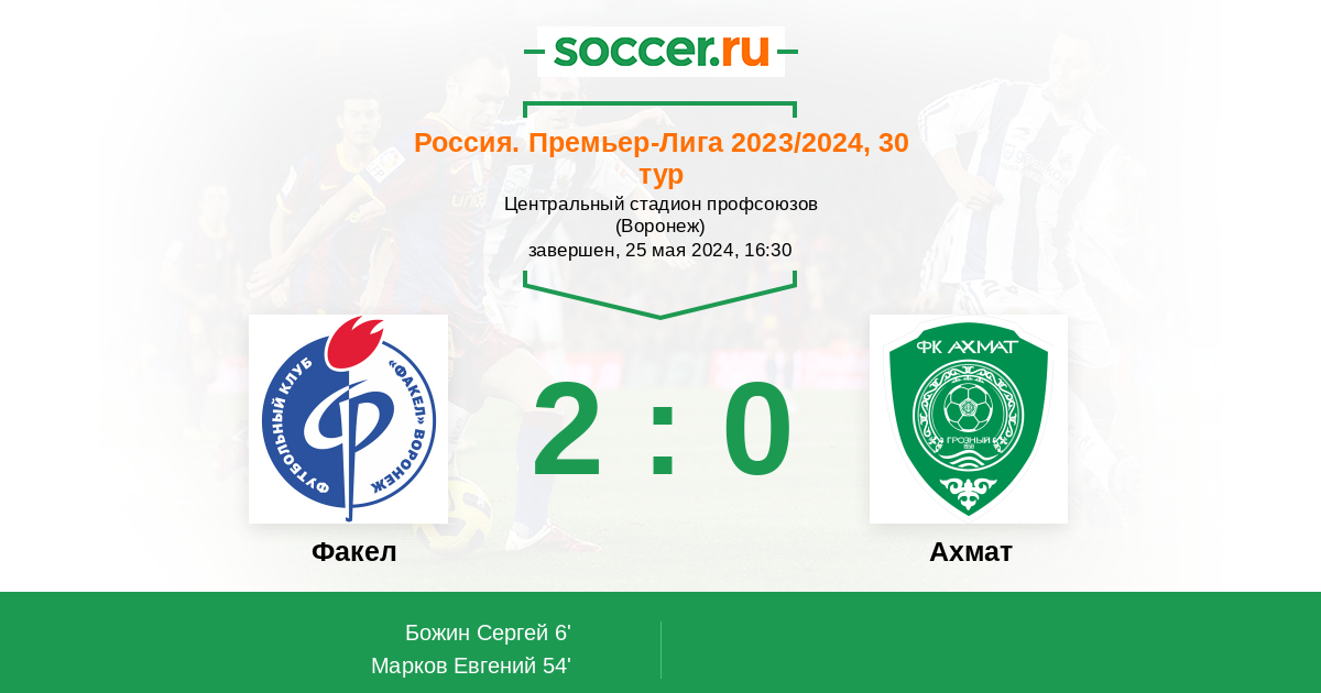 Протокол матча Факел против Ахмат