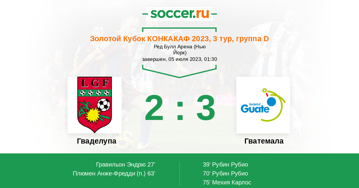 Протокол матча Гваделупа против Гватемала