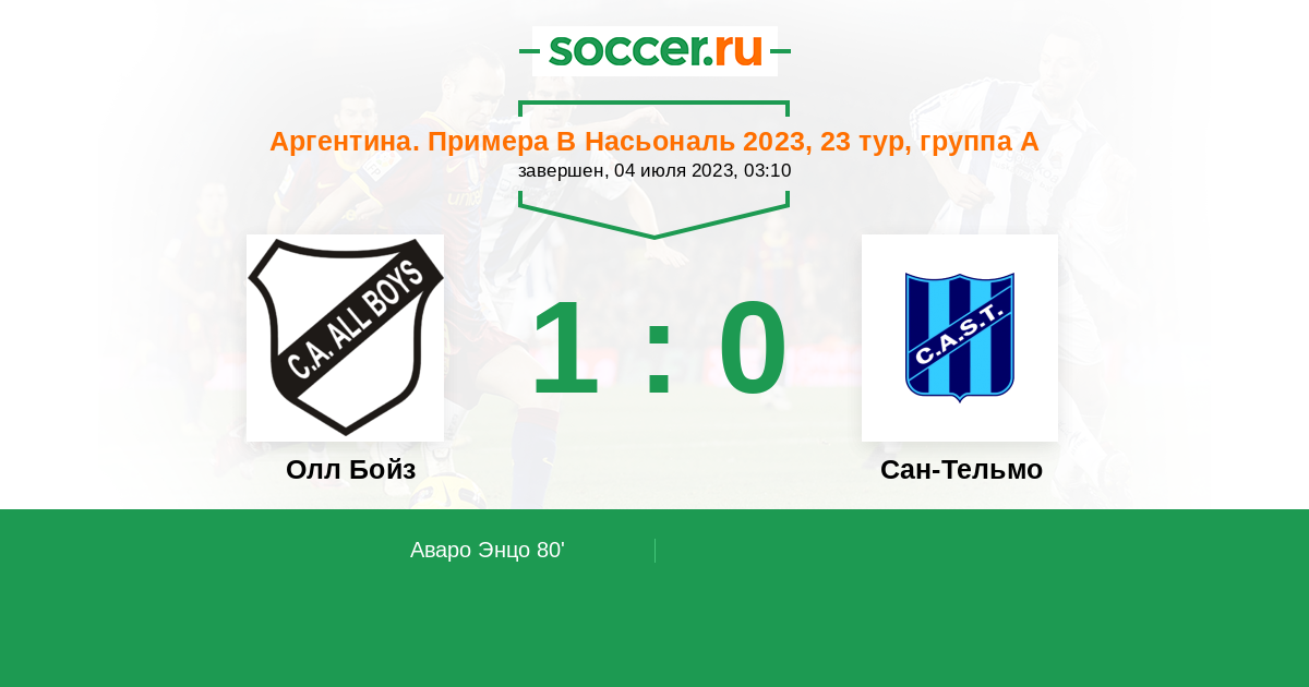 Протокол матча Олл Бойз против Сан-Тельмо