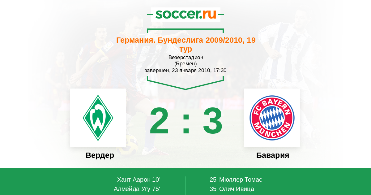 Протокол матча Вердер против Бавария